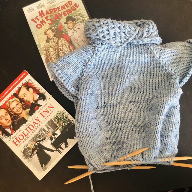The bluebird sweater is almost finished! Life has kind of gotten in the way of my knitting a lot, but I am almost finished with the second sleeve, and then can weave in ends and block it. I have basically a third of two pairs of baby socks knit, too. My goal is to have all of these projects finished in a couple days.