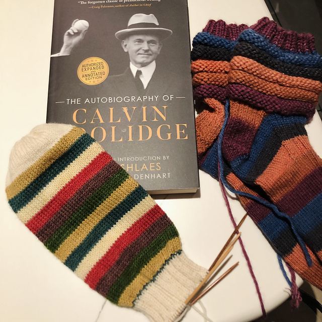 I've only opened Autobiography of Calvin Coolidge once in the last week, ditto for Garden of Truth. A few nights, I have been able to peek into Mrs. Pollifax on the China Station, though.