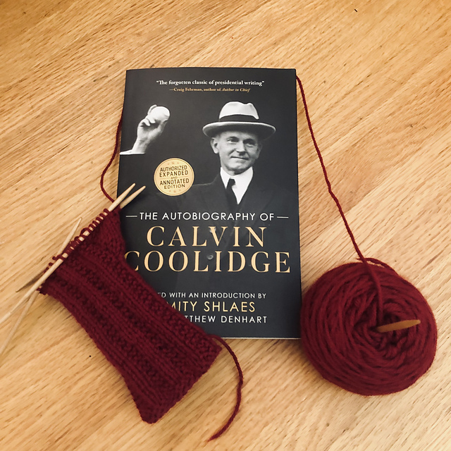 Most of the books I have open are a little more demanding of me than I can handle in this socio-political climate, so I took a moment to open up the Autobiography of Calvin Coolidge and read about the only president I admire without qualification. I'm hoping I don't find out he was a jerk of a man, but I admire his policies and principles. Also, after a long bout of books recommended that I ended up not liking, I picked up The Unexpected Mrs. Pollifax, recommended by another crafting blogger, from the library and am finding it delightful. I'm not all the way through it, so maybe I will change my mind, but for now, it is a fun, interesting, but not too taxing book.